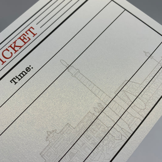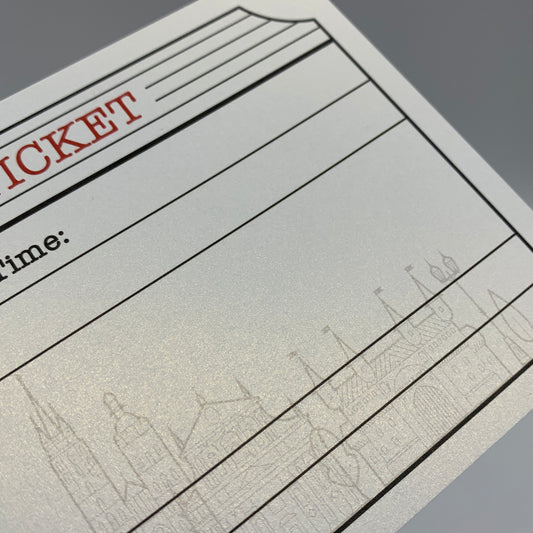 New York Travel Ticket (White with Gold Shimmer) & Envelope. New York holiday themed DIY gift