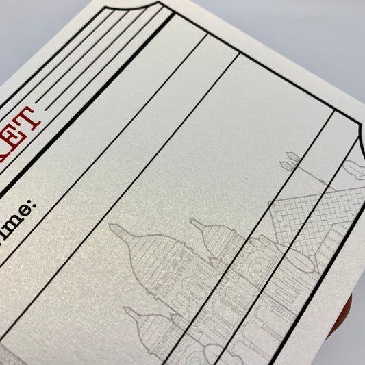Krakow Travel Ticket (White with Gold Shimmer) & Envelope. Krakow holiday themed DIY gift