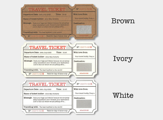 Vintage Personalised Travel Ticket Holiday Surprise Scratch & Reveal Card (Choice of Colour)